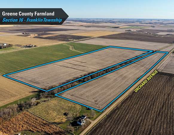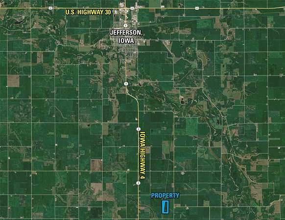 Greene County, Iowa Farmland for Sale! I'm pleased to present 74 acres m/l of prime Greene County, Iowa farmland. Located 5 miles south of Jefferson, Iowa, and just south of the Cooper, Iowa, the farm includes 69.73 FSA NHEL cropland acres. Prominent soil types include highly productive Webster clay loam, Clarion loam, and Canisteo clay loam with an average CSR2 soil rating of 86.8, well above the Greene County, Iowa average CSR2 soil rating of 78.3. County drainage tile is located on the tract with a tile main running through the south half of the tract, draining water east off the farm. The farm lies within Drainage District 108 and sits near the top of the district. Additionally, there are three tile intakes located on the north half of the farm, indicating that additional private tile has been installed on the farm. See the attached 'Drainage Tile Map' for approximate location and sizes. The Raccoon River Valley Trail cuts through the tract diagonally, and there is an established crossing in place to access the eastern part of the farm. Situated in Section 16 of Franklin Township, this farm lies within a strong agricultural community with grain markets and ethanol plants located nearby in Grand Junction, Iowa, and Coon Rapids, Iowa.