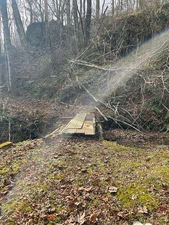 From I77 at Fancy Gap go east on Chances Creek toward Hwy 52. go South on 52 to Blue Ridge Parkway. Go North on Blue Ridge parkway approximately 6 miles and turn right on Orchard Gap. GPS 1427 Orchard Gap Rd. Turn left and continue to you see a storage building. Property isnt accessible by car, you will need to walk left on the road , cross the bridge and property is on the left.