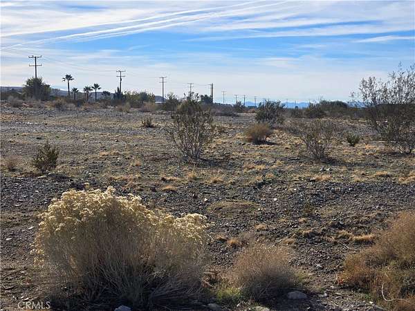 Est $260/moNice, flat buildable corner lot with both access on National Trails Hwy and Columbine St. 287 sq ft frontage on National Trails Hwy. Electrical posts on Columbine St. 360-degree desert and mountain views. There appears to be a structure on the lot at one point but what is left is a concrete pad.