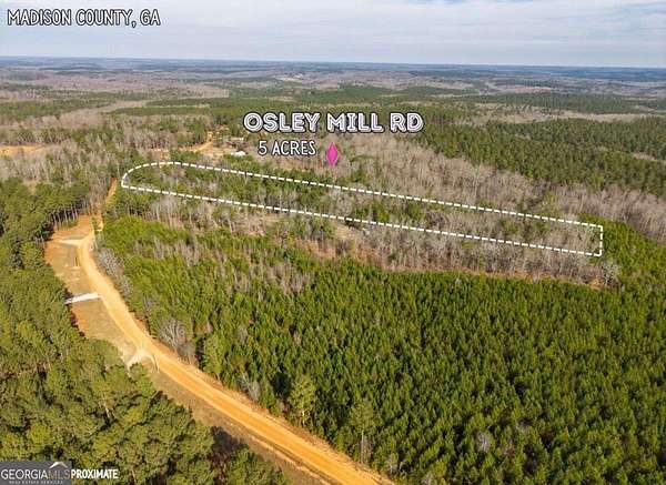 Build your dream home on this 5-acre wooded lot in Madison County, Georgia! This private, unrestricted agricultural land offers the perfect blend of peaceful country living and convenient access to nearby towns and amenities. 5 acres Unrestricted Buildable Madison County GA land for sale Location highlights: 10 minutes to Comer, 20 minutes to Hull / Athens Tech, 30 minutes to Athens & Commerce, 15 minutes to Broad River Outpost & Watson Mill Bridge State Park, 30 minutes to Lake Hartwell & Lake Russell :: Property features: Cleared driveway to future homesite, Mature hardwoods for natural privacy, County dirt road access, Zoned Agricultural, No CCRs, Surveyed 5-acre parcel :: Utilities: Power available nearby, Well & septic needed (surrounding homes utilize private systems), No public water or sewer :: Ideal for Residential Use or Investment: Land hold, Mobile/modular placement, Build-to-rent, Land Appreciation Entry price under $100K provides strong upside in a growing Northeast Georgia market. Unrestricted zoning allows multiple exit strategies. Enjoy peaceful country living while remaining convenient to Athens-area employers, shopping, dining, and recreation.