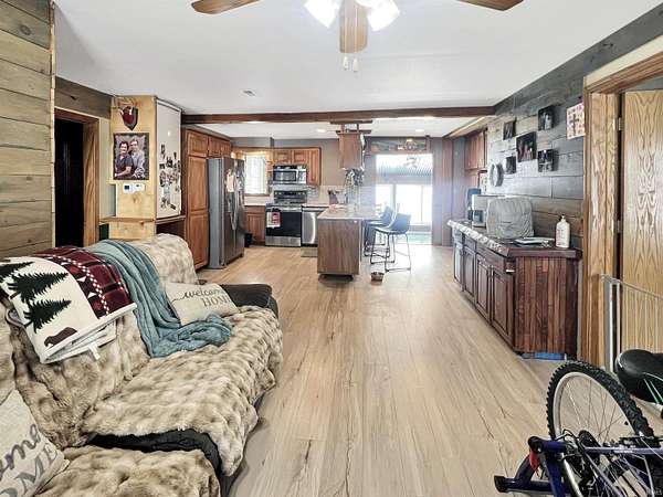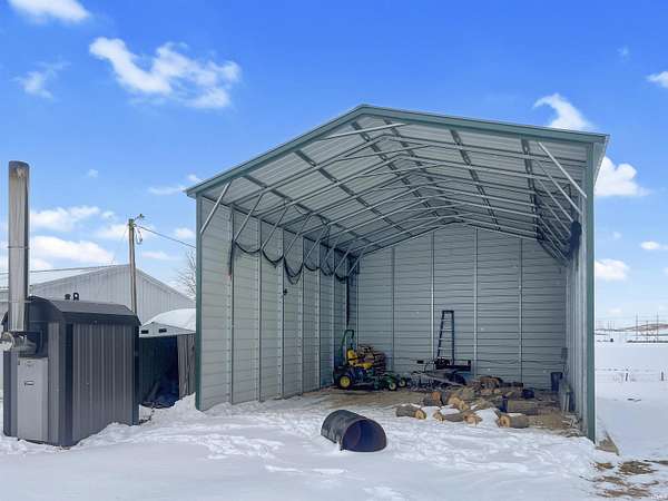 Welcome to this one-owner pole barn home nestled on 1.5 peaceful acres in the countryside of Boone Township. Offering the perfect blend of comfort, space and functionality, this 3 bedroom, 2 full bath home is ideal for those seeking room to live, work and play. Featuring a large master bedroom with full bathroom & walk-in closet, spacious secondary bedrooms, open living room and eat-in kitchen, laundry room and a temperature controlled sunroom - perfect for using year round while enjoying scenic rural views. Attached to the home, you'll find a massive 42' x 30' garage with 3 bay doors and additional oversized carport. A titanium Central Boiler system provides additional heat in the colder months and utility savings for the home and garage along with the furnace and central AC. Set on a hilltop with tons of open space, this property delivers privacy, tranquility and true country living - while still offering convenient access to nearby towns and amenities.