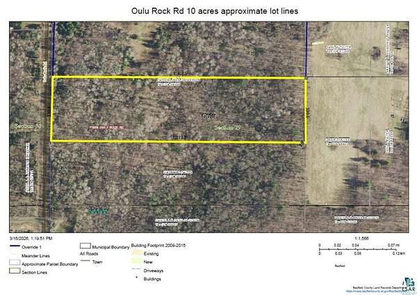 Est $618/moTen +/- wooded acres of Northern Wisconsin waiting for you. Tall birch and mixed hardwoods, abundant wildlife, and the peace and quiet of the Town of Oulu. Conveniently located near Brule, WI, home of the world-famous Brule River, and Iron River offering dining, shopping, and everyday amenities. Wetland determination completed, upland building sites available. Electricity across the street and fiber available. Perfect hunting land, cabin site, or long-term investment. Zoned F-1 Forestry. Seller to split approximately 10 acres from Tax ID 39348. Southern boundary flagged from adjacent previous survey.