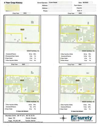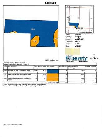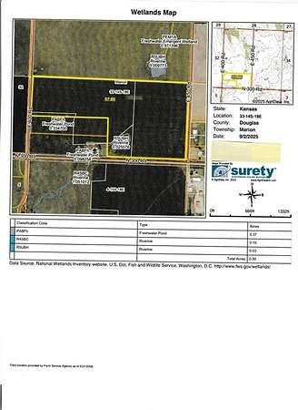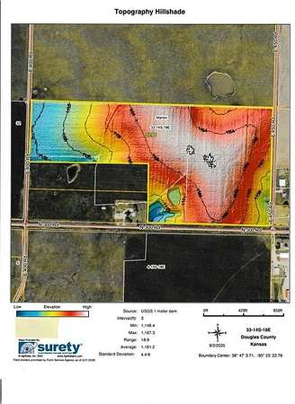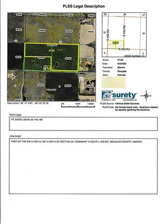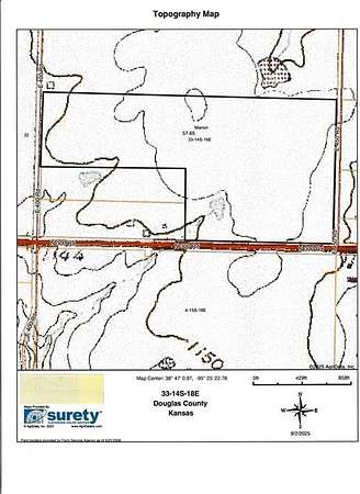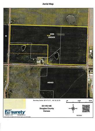 Add to your operation with this beautiful grass tract. Sets North on 56 Hwy, has a pond, 2 sides of gravel roads, easy access to 56 Hwy. Build your dream home. Aerial map, created with Surety Pro paid subscription & used with permission from AgriData, Inc.
