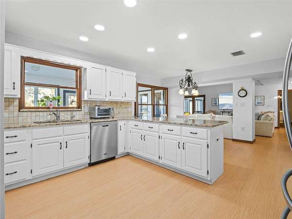 - Cathedral Ceiling(s), Ceiling Fans(s), Eat-In Kitchen, High Ceilings, Kitchen/Family Room Combo, Open Floorplan, Primary Bedroom Main Floor, Thermostat, Walk-In Closet(s)
