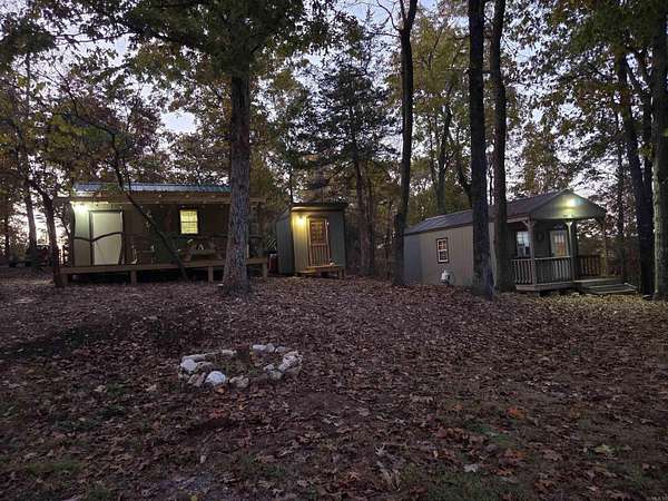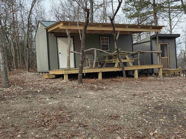 10 Acres Bordering The Sylamore National Forest - Turnkey Off Grid Cabin VRBO Escape to the Ozarks with this rare 10-acre property surrounded by The Sylamore National Forest on two sides, just minutes from Roasting Ear Creek. Private, peaceful, and fully set up as a successful VRBO-style getaway, this property is ideal for recreation, investment, or a personal retreat. The land features two charming Bald Eagle Barns: Main Barn - thoughtfully converted into a kitchen and bedroom Bunkhouse Barn - perfect for guests, with a spacious front deck for relaxing and taking in the scenery A separate bath house includes a sink, toilet, and walk-in shower, offering comfort while maintaining the rustic outdoor experience. Additional highlights include: Outside fire pit for evenings under the stars Excellent deer, turkey, and small game hunting right on the property, Private well already in place Secluded setting with direct access to thousands of acres of public land Whether you're looking for a turnkey short-term rental, a hunting basecamp, or a quiet off-grid-style escape, this unique property offers endless possibilities in a highly sought-after natural setting all for only 149,900.