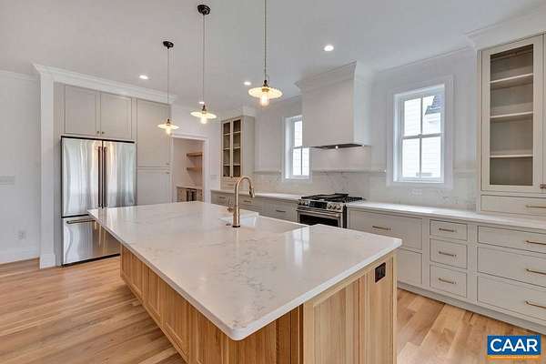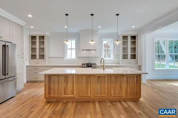 A classic 4 BR Virginia farmhouse TO BE BUILT on three pastoral acres just minutes from UVA, Farmington, and Boar’s Head in the heart of Ivy. The thoughtful layout and high-quality finishes make this kitchen a focal point of the home, featuring custom-designed, furniture-grade cabinetry with inset doors, a spacious island that seats 5, large walk-in pantry, and professional-grade appliances. A main level flex space (perfect as a play room or a 2nd main level office) is quietly tucked away off the mudroom. Upstairs, a generous primary suite plus 3 additional bedrooms, two full baths, and laundry. Outdoor living is equally inviting, highlighted by a screened porch with a fireplace for three-season dining and lounging. A deep front porch fully wraps around the home to enjoy the pastoral views. The unfinished walk-out terrace level offers plenty of room for expansion—recreation room, 5th bedroom/bath, and storage. With a generous rear lawn framed by pastoral views across rolling farmland. Also offered with 2-car detached garage or a 3-car attached with guest suite above. An exceptional Ivy rural setting within Ivy/Henley/Western Albemarle school district.