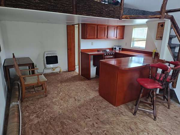 OFF THE GRID. Peace and serenity cabin on ten plus acres. Handmade cherry countertops, small gas range and a propane heater. Loft upstairs for sleeping. Just the basics for your get away cabin. The 25' x 14' cabin is wired for use with a generator Acreage buts up to hundreds of Michigan State Land acres. Driveway starts at approximately 10516 Snow Bowl Road. Roscommon County GIS mapping calls the road Heaven on Earth Road.