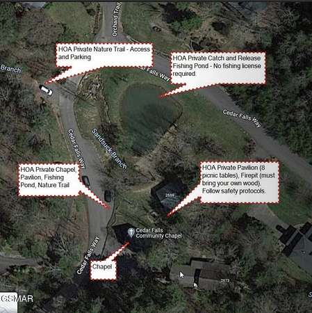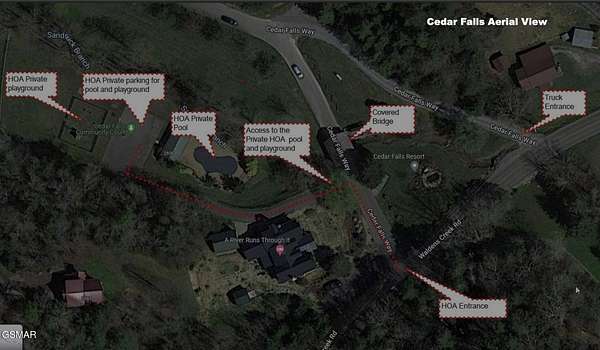 From Light #3 in Pigeon Forge take Wears Valley Road (321) westward. Turn right onto Waldens Creek Road. Turn right into Cedar Falls Resort (Cedar Falls Way) and continue past the pond & chapel. Take a left onto Bear Crossing Way, then take the first right onto Owls Cove Way. Follow Owls Cove Way to the end of the cul-d-sac and the lot is on your left.