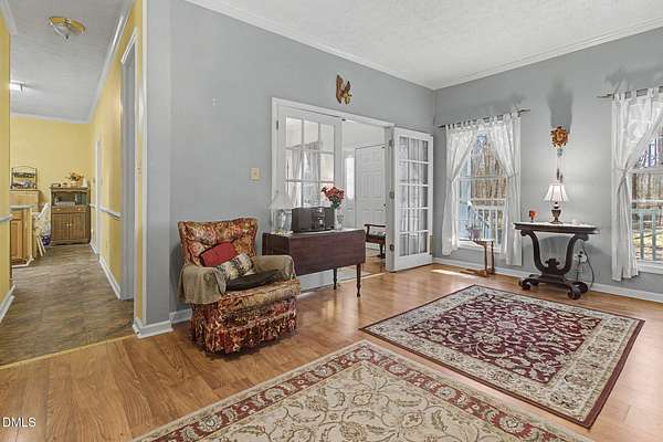 Enjoy peaceful living in this spacious modular home nestled on a private 2.63-acre lot surrounded by nature. Warmth and character fill the interior, highlighted by a sprawling family room with a stunning brick fireplace and french doors-- the perfect gathering space. Beautiful moldings add charm throughout the home. The kitchen features a center island, great counter space, generous cabinetry, Refrigerator conveys and a bright breakfast area for casual dining. A formal dining room offers flexibility and can easily serve as a home office. Upstairs, the spacious primary suite provides a private retreat complete with a sitting area ideal for a hobby space or office. The en-suite bath features a relaxing garden tub, separate shower, and a large walk-in closet. Step outside and enjoy true outdoor living. Relax on the rocking chair front porch while watching the birds, unwind on the screened porch overlooking the woods and deer, or grill out on the deck. The fenced yard offers a safe space for pets to roam, and gardeners will love the blueberry bushes, elderberries, and strawberries that bloom in the spring. An oversized garage provides abundant storage, plus there's a wired storage shop for additional workspace or equipment. The floored attic adds even more storage options. Encapsulated crawlspace with sump pump. If you've been searching for a spacious home on a beautiful parcel of land, this one is a must-see!