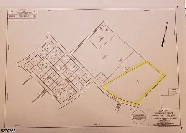 10.6 Acres of land with possible subdivision, in the charming town of Belvidere only blocks away from the historical district. This lovely town offers shopping, dining, hiking, boating picturesque views of the Delaware and Pequest River, and much more. Previous proposed subdivision of 13 residential lots was approved but was not finalized, Buyer to do their own diligences.