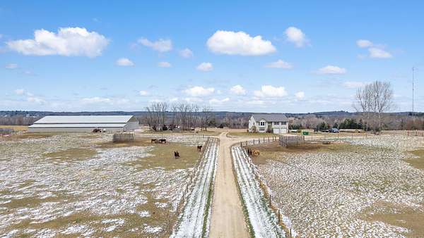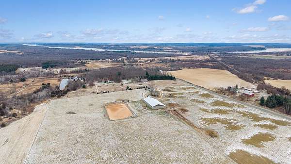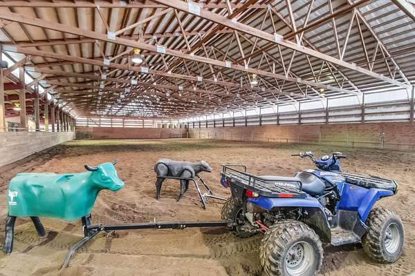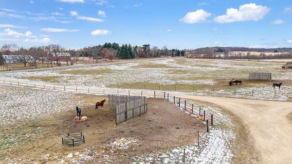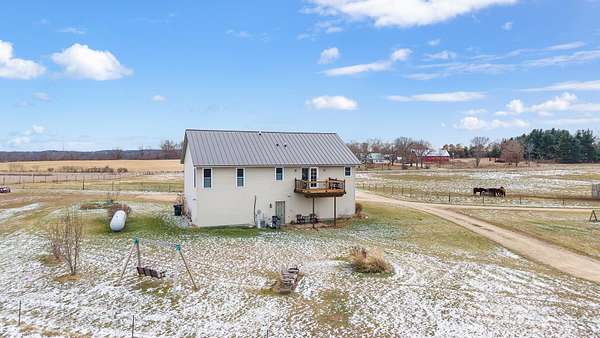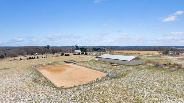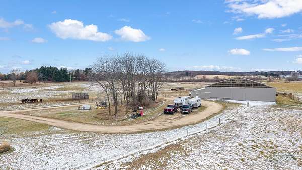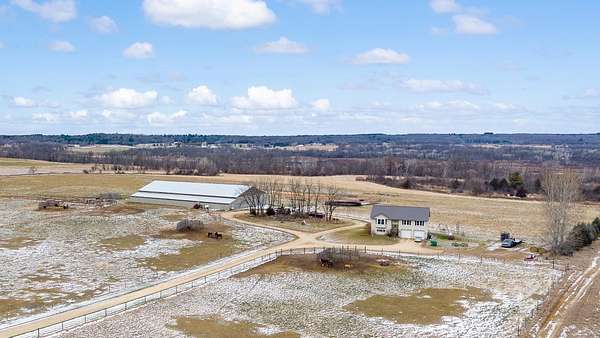 Ready-to-Ride! Horse Training Facility on 40 acres in Oxford. Conveniently located minutes from Interstate I-39. Discover income potential or your own private piece of horse heaven. This rare, turn-key equestian property offers everything serious horse owners and trainers are searching for - circle driveway by barn, an insulated, lighted 80' x 180' indoor arena, with 18' enclosed lean-to, 8 stalls with dedicated hay storage, outdoor roping arena, round pen, fenced pastures and 40 beautiful acres with sweeping views. This well maintained home is built with durable, safe energy efficient insulated concrete form (ICF) construction and features 4 bed, 3 full baths, a heated 2 car attached garage, newer metal roof, and a deck perfect for admiring the view. Enjoy abundant natural light, peaceful