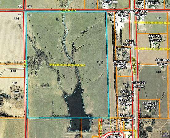 North of Holton on Highway 75 to county road 246. Property site on the Southeast corner of 246th Rd & P Road. Two gate access points on 246th Rd, one on P Road. For GPS use 12333 246th Road, Holton KS.