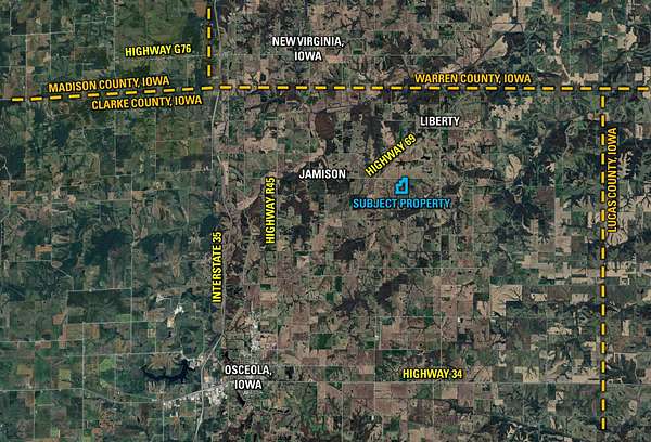 Peoples Company is pleased to offer this 75-acre m/l combination farm featuring highly productive row-crop ground, pasture, hunting land, and potential building sites, located just north of Osceola and south of New Virginia in Clarke County, Iowa. The property lies in Sections 13 and 24 of Fremont Township on Pacific Street, just over a mile east of Highway 69.