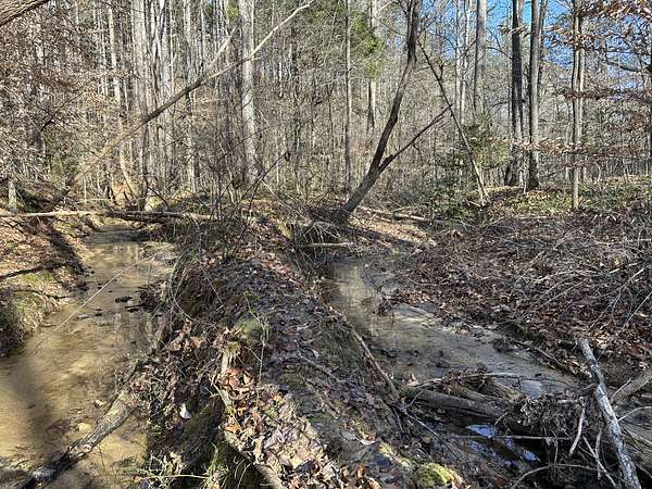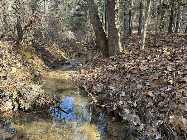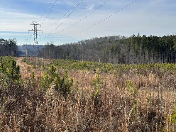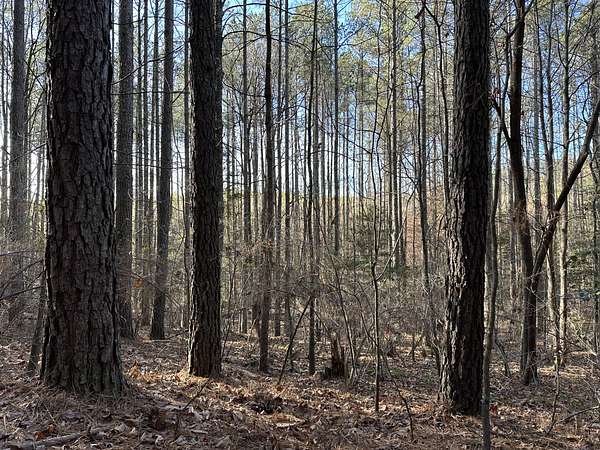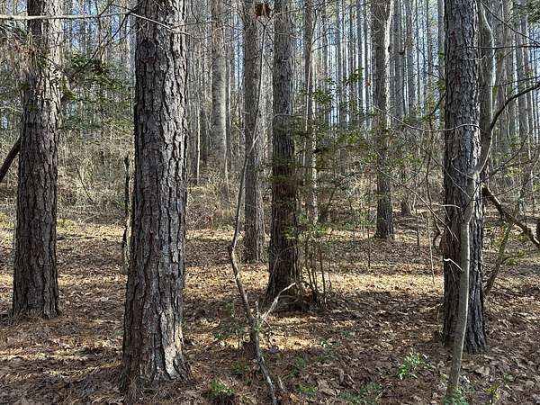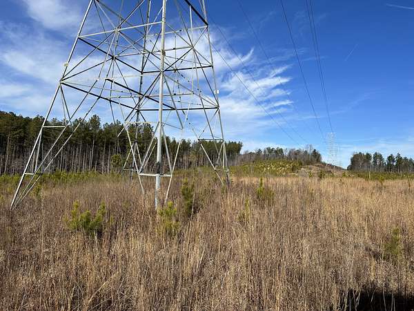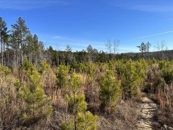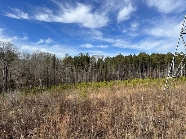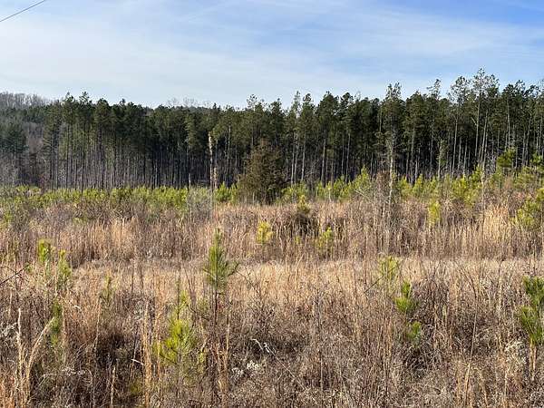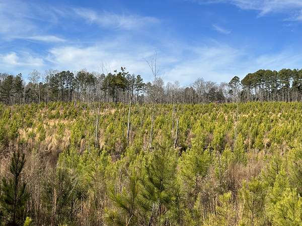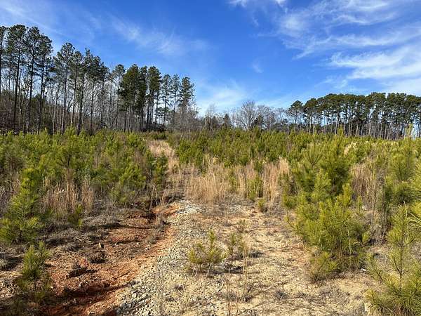 About 44 acres are forested with loblolly pine planted in 2021 and now in their fifth growing season. These young trees are healthy and growing fast. The upper end of Browns Branch is a small stream that crosses the back side of the land. Some steep slopes overlook the little stream. Older pines, interspersed with a few hardwoods, stand in patches that collectively cover approximately 12 acres. A steel tower power line crosses the property about two-thirds of the way back from the paved road, occupying a right-of-way that spans about 5 acres.