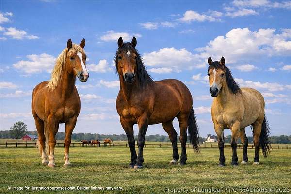 Welcome to Paddock Meadows, a thoughtfully designed equestrian community where country living, open space, and the love of horses come together. Phase 1 introduces a limited collection of estate homesites designed for those who value privacy, room to roam, and the opportunity to create a property tailored to their lifestyle. Homes in Paddock Meadows are offered as pre-sale opportunities, allowing buyers to personalize their future home from the beginning. Buyers may choose from a selection of thoughtfully designed floor plans or bring their own floor plan to receive a custom quote from our builder. This lot features The Stallion floor plan, a 2,266 sq.ft home with 4 bed/2.5 bath, and double car garage. Designed with the equestrian lifestyle in mind, owners may choose to add improvements such as barns, riding arenas, and fenced pastures for an additional cost, allowing you to create the horse property you've always envisioned. The community also features nearly two miles of private riding trails, offering residents the ability to enjoy horseback riding right from their own property. Well-positioned for the equestrian lifestyle, offering convenient access to Nicholson Creek Game Land for trail riding, Carolina Horse Park for shows, schooling, and clinics, and 7 Branch Farm & Arena, a nearby rodeo and western events facility, all located within approximately 15-20 minutes. The area is included in North Carolina's broader equestrian corridor planning, providing long-term appeal for horse enthusiasts. Prices, plans and availability are subject to change. Buyer to verify zoning, soils, permitting, subdivision potential, and intended use. Hablamos espanol. *AI images for illustration purposes only. Builder finishes may vary.*