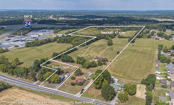 Prime 47+/- acre opportunity near I-24 Exit 16 in Paducah, KY! This beautiful property, historically used as a cattle farm, offers endless potential for agricultural, residential, commercial, or mixed-use development. Featuring over 700 feet of I-24 frontage and additional frontage along US Hwy 68/Benton Road, this site provides excellent visibility and accessibility. Located less than a mile from Exit 16, the property sits in a growing corridor surrounded by established commercial businesses and ongoing development, including Southern Pride Auto/Truck Plaza, with steady daily traffic and semi-truck flow. The land is mostly flat and usable with utilities available at Benton Road. Zoned partially UR and partially Commercial, allowing flexibi