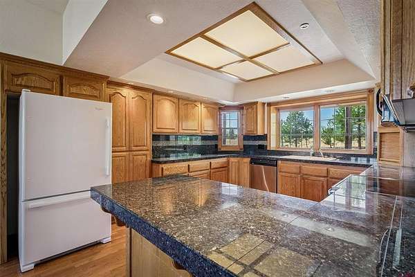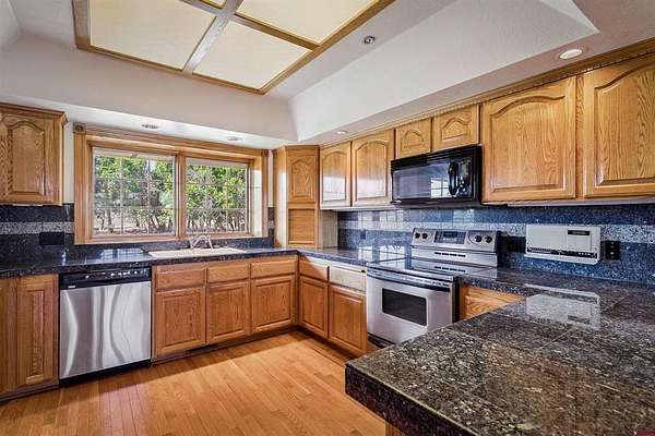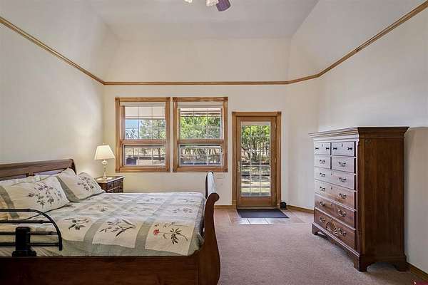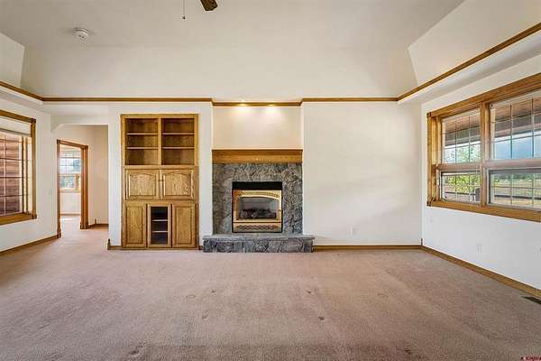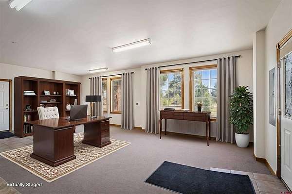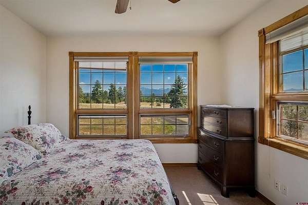 Laura Daniels, Team Pagosa Realty Group, C: 970-946-9281, laura@teampagosa.com, www.teampagosa.com: Custom single level dream home with expansive views of Pagosa peaks. First-choice lot and first house built at Pagosa Lakes Ranch, this home has the feeling of being in the woods, but is less than a mile from Uptown's great amenities: shopping, restaurants, City Market, and Pagosa Medical Center.The house is a beauty, freshly painted inside and out with the exterior wood sidingre-stained and protected. Thanks to its excellent airflow, high ceilings, and 32 windows, the entire house is light and bright. Lots of built-in storage drawers and cabinets throughout. Primary bathroom has an extra large roll-in shower built to ADA standards. Ramps are used for elevation changes. Two large decks extend the living spaces.The kitchen features a long wrap-around black granite countertop that lets the chef work easily on three sides. Picture this: your morning coffee while watching hot air balloons drift slowly skyward.A big "Bonus Room" (former garage) with half bath can be used for guests, a studio, workshop, or playroom. Just outside, the driveway curves like a horseshoe, so there's no need to back up. Opposite the three-car garage and expansive driveway, the hillside slope makes for fun sledding in winter, then becomes a seasonal pond for migrating birds and wildlife in the spring. You can live close to nature here and know that civilization has your back.