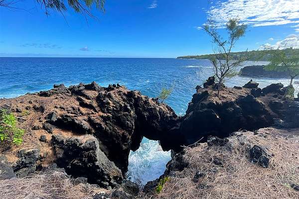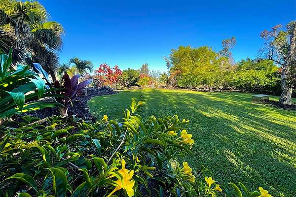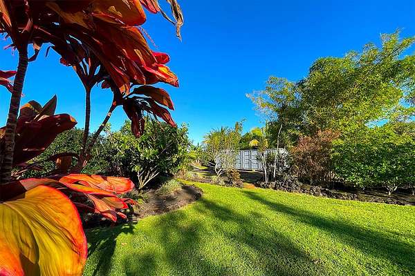Located in the highly desirable coastal enclave of Puna Beach Palisades, this beautifully landscaped, nearly half-acre lot (approximately 20,000 sq. ft.) offers a rare opportunity to own a peaceful slice of paradise on the Big Island of Hawaii. The property features mature fruit trees, expansive lush lawn, tropical plantings and striking lava rock landscapes, and the potential for ocean views from a post-and-pier home, as enjoyed by many neighboring properties. The rear of the lot borders 70+ acres of State land, providing exceptional privacy and unobstructed views of expansive lava fields and native Ohia forest-an enduring natural backdrop that will remain untouched. A charming lava rock wall welcomes you at the entrance. The lot is almost completely landscaped yet allows a new owner to put the final touches to the existing gardens or design and build a custom home in harmony with the surrounding environment. The property is gated, has a large water catchment tank, and a 40 feet container used as a storage (sold separately). Offered first to the buyers of the stunning contemporary, Craig Steely, Lavaflow1 home available for sale next door, TMK 3-1-2-33-87. Just a short walk away is Kehena Beach, one of the few year-round black sand beaches on the windward side of the island. Enjoy swimming in the crystal-clear Pacific, where sea turtles and dolphins are often spotted. For everyday conveniences, the vibrant town of Pahoa is only a 20-minute drive, offering restaurants, grocery stores, gas stations, and other amenities. This is a rare chance to own a private, scenic property in one of East Hawaii's most sought-after coastal communities.