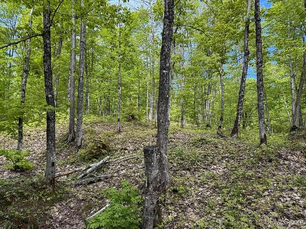 This is a high quality 40 acre parcel of hardwoods with some nice smaller ridges on in it to give it some character. The property appears to be very high in elevation and dry with excellent drainage. The property currently does not have a legal easement, so cash would be needed for purchase. A home equity loan could potentially be an option too. There are two roads that lead into the property that are not currently gated. The property is bordered by State of Michigan land to the south and timber company land to the west. A lot of privacy and a lot of extra land to enjoy and explore beyond this parcel. There are numerous inland lakes nearby for fishing opportunities.