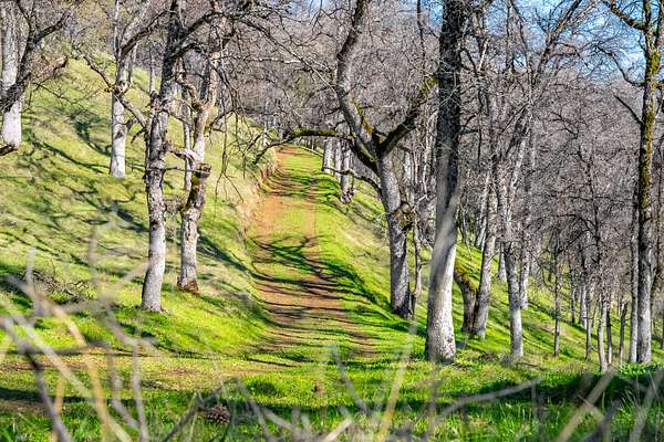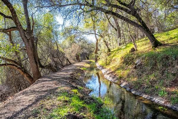 The property contains a system of unpaved roads and trails for access to the south-facing hilltops, Primary gated access is from the paved and private Palace Lane , with additional gated access from Bucks Bar Road on the east boundary and Ranch Road on the west. El Dorado Irrigation District’s Crawford Ditch traverses the property and provides access to residential and irrigation water. The property is fenced along the west, south, and east boundary lines.