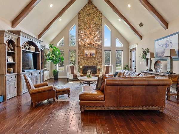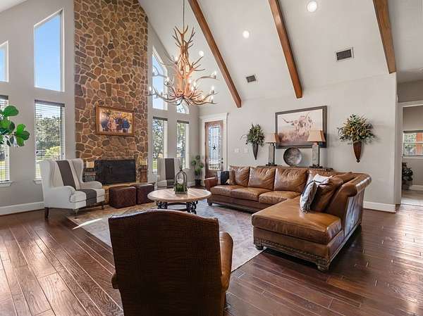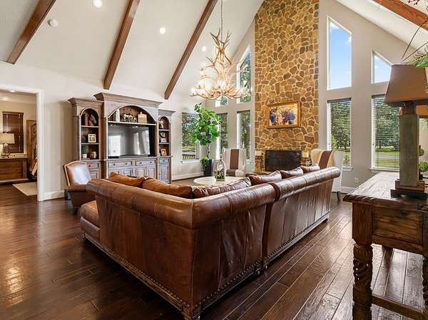 Est $3,867/moDiscover elevated country living in this beautifully updated 4 bed/4 bath luxury family home featuring an open-concept w/ modern finishes and exceptional storage throughout. Highlights include a brand-new custom 5-star designer closet, a cathedral ceiling with a sprawling rock fireplace, spacious living areas, a separate office or flex space as well as a 30X40 barn and a concrete driveway. Enjoy the lovely landscaping and huge oak trees. Perfect for families seeking comfort, privacy and upscale living in a peaceful setting.