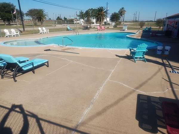 Take 35 S. out of Palacios to Cape Caranchua. Turn left and go to W. Bayshore. Turn left on W. Bayshore. Lot is on the left.