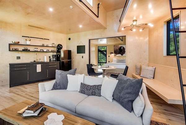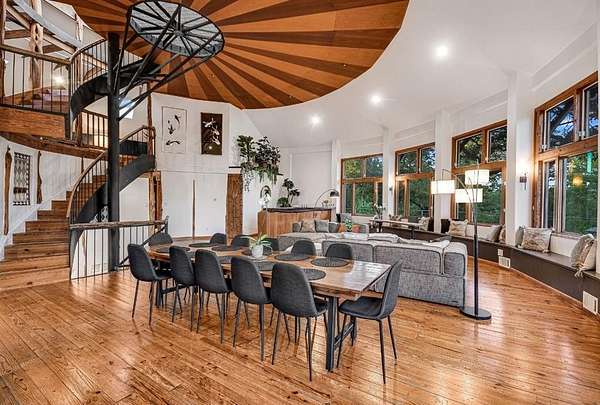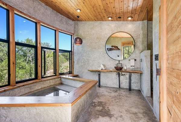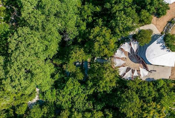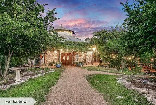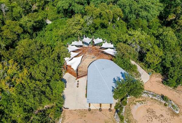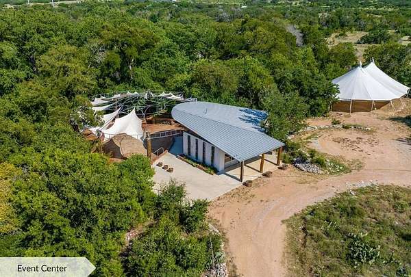 A unique event venue sits among the trees, with a creekside amphitheater, floating platform, large pavilion with a stage, and caterer's prep kitchen -- ideal for weddings, concerts, yoga retreats, and corporate events. Throughout the property, you'll also find a tranquil onsen-style bathhouse, waterfall tub, two sparkling pools, a peaceful pond, farmland, equestrian amenities, multiple water wells, and high-fenced pastures where bison roam.