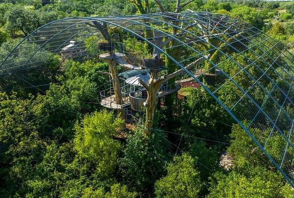 Tucked in the heart of Texas Hill Country, Cypress Creek Ranch is shaped by a spring-fed creek that winds through ancient cypress trees -- some standing for over 800 years -- before joining the Pedernales River-Lake Travis. The property features a spacious 4,400 sq ft ranch house, a 4,000 sq ft workshop, five enchanting treehouses perched above the creek, and seven glamping tents for a true outdoor getaway that offers endless ways to enjoy nature or build a thriving business.