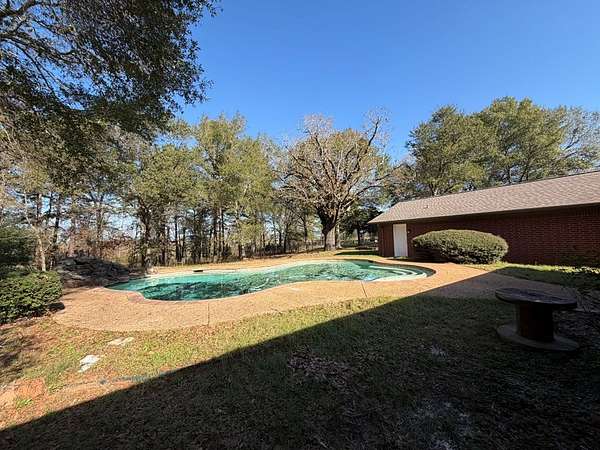 Est $2,624/moUpdated and move in ready home on 9.738 acres featuring fresh paint throughout, granite kitchen countertops, new carpet, redesigned primary bath with a whirlpool tub and a walk in custom shower. The home features a 3 car garage with the half bath accessible from the pool area and a concrete pad to park an RV. Custom pool sitting just off the covered patio is great place to cool off and relax. There are cross fences to keep livestock with a 3 sided shelter in this area. If the 3 car garage isn't enough storage, there is an additional storage building for the overflow. Privacy provided by an electric gate (disconnected at this time).