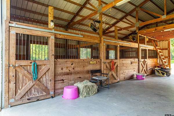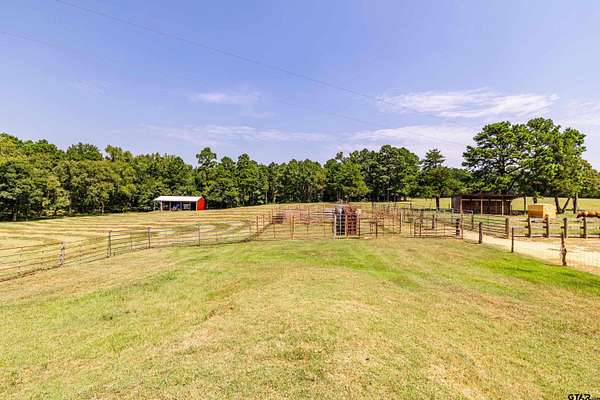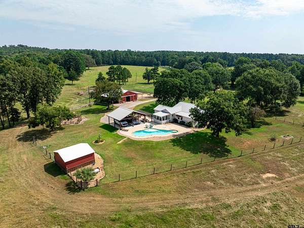 Arrive to the GBH Farm through a solar-powered, code-access gate and follow the tree-lined drive to a beautifully remodeled farm house. The property is a turn-key retreat or primary home for people wanting a residential/hobby farm with beautiful views overlooking the park like forests and pastures that this East Texas location is famous for. Situated on 51.29 acres of cultivated and native pasture, woods with wet weather creeks and a nice pond, the land has been meticulously maintained. There are two separate houses, each with a separate entrance and separate driveway. The 2,047 sq ft primary home is a lovely 1900's restored farm house that has been added on to as well as updated. It boasts several patios overlooking the swimming pool (built in 2021) and outdoor kitchen (built in 2022),Spectrum high speed fiber internet, and wired for backup generators for both barn and home. The horse barn, stalls and tack room are a short walk away. The 2,014 sq ft guest house was built in 1982 has great views of the back of the property and the neighboring owners pond. There is a convenient adjacent 3 car carport and attached shop/storage building. The immaculately and lovingly maintained property is a mixture of gently sloping, open pasture land with beautiful views overlooking the park like forests and trails providing habitat for the abundant wildlife in the area. There are wet weather creeks/draws and a nice stocked pond. There is a fenced vegetable garden and permieter fencing as well as cross fencing with net wire. The farm has community water and a north/south seasonal creek running through the woods on the west side of the property. Water is piped to each of the stalls, turn outs and pastures and collected in a variety of troughs. The farm has a variety of trails and a blind to hunt or observe wildlife. Palestine is a growing city with access to restaurants, shopping and activities minutes away.