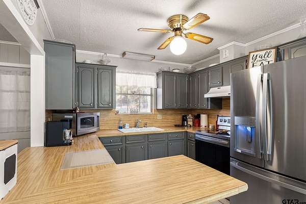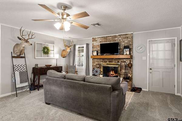 Welcome to your next home nestled in the country outside of the peaceful Palestine community in East Texas. As you pull into the driveway of this ranch style home, you will notice the ample parking and the charming front porch welcoming you into the home, the perfect backdrop for morning coffee or evening chats with neighbors. Inside, you'll be greeted by the centerpiece fireplace creating the heart of the home. A pass thru bar into the kitchen along with the adjacent dining area ensures everyone is included in the family gatherings. A large pantry big enough to accommodate an extra refrigerator or freezer provides all the storage you need for cooking and entertaining items. The generously sized family room could also be utilized as a media room or a home office with its own access from the exterior of the home. Nestled away from main living areas, you will find 3 spacious bedrooms and 2 updated bathroom providing comfortable accommodations for family or guests. Bonus: Primary bedroom has 2 LARGE walk-in closets! Exiting thru one of the back doors, you will find a fully fenced backyard and a large covered patio perfect for enjoying a cold beverage on a hot day. There's plenty of room for pets, gardening, play structures, etc. The detached 2 car garage completes the property. Major components have been updated including hvac, electrical panel, septic system, and hot water heater.