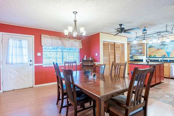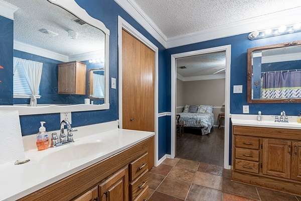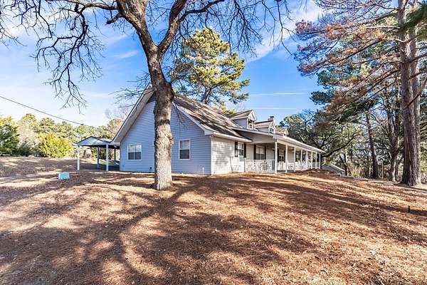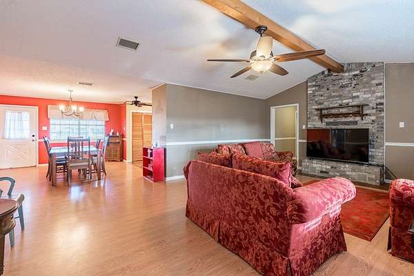 Experience the charm of country living in this spacious ranch-style home, perfectly situated just outside the city limits while remaining conveniently close to town. This inviting property boasts 4 bedrooms and 4 bathrooms, including two primary suites--each featuring large walk-in closets for ample storage. The open-concept kitchen and dining area is ideal for gatherings, and the cozy wood-burning fireplace adds warmth and character to the living space. Enjoy the outdoors with both a large covered front porch and a covered back porch, providing plenty of space for relaxing or entertaining. The gated entrance offers privacy and security, while mature pine trees create a serene, picturesque setting. The expansive yard is perfect for children, complete with a swing set, tire swing, and even a batting cage for endless fun. An added bonus is the private 1-bedroom, 1-bathroom guest home on the property, which can be used for entertaining, as a guest house, or as a rental property--the possibilities are endless. With abundant storage throughout and numerous features designed for comfort and convenience, this property offers the best of country living with easy access to town amenities.