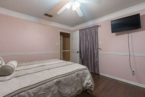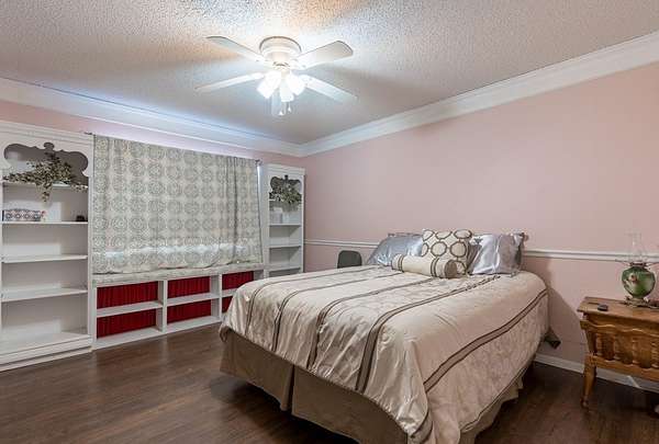 - Blinds, Ceiling Fan(s), Raised/High Ceiling, Trim/Molding, Walk-In Closet(s)