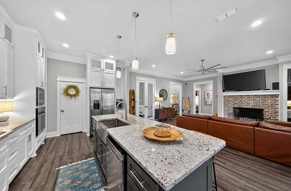 This beautiful waterfront 4-bedroom 2.5 bath home sits in the sought after Ranch at Pine Mountain. The community offers access to two lakes for fishing, paddleboarding, kayaking, or canoeing, hiking trails to enjoy the wildlife, & pickleball courts for exercise plus a clubhouse and pool. This home sits on just over 2 acres overlooking one of the community lakes. As you step inside, you'll find an open floor plan with tons of windows. The fabulous kitchen has custom cabinetry, stone countertops, a large island with plenty of seating, upgraded appliances & a walk in pantry. The dining area sits right off the kitchen. Split floor plan offers privacy with the owner's suite featuring a soaking tub, separate shower, dual vanities & huge walk-in closet. The children's or guest wing has large bedrooms and a bath with dual vanities. The 4th bedroom could be an office or nursery. The living area is centered with a fireplace flanked by built ins and windows that overlook the lake. The back yard is completely fenced, and you even have a greenhouse for your gardening fun. This home has so much to offer. https://pinemountainranchtexas.com