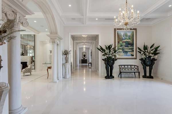 Introducing a magnificent Palm Beach Gardens Estate. This elegant residence of 25,202 square feet, which has 17,820 square feet of living space, sits on approximately 2 acres of beautifully landscaped lakefront property. In addition to the main home, this estate includes a guest cottage & guest apartment. Features include 8 bedrooms, 10 full baths, 6 half baths, 4 full kitchens, 3,000+ bottle wine gallery, 4 fireplaces, multiple loggias/balconies and an oversized 7 car garage. The 32,000 square foot back yard showcases large mature banyan trees and manicured gardens, providing ultimate privacy and serenity. This home has exceptional indoor/outdoor living and entertainment space for both large and intimate gatherings. Located in the prestigious gated community of Old Marsh Golf Club.