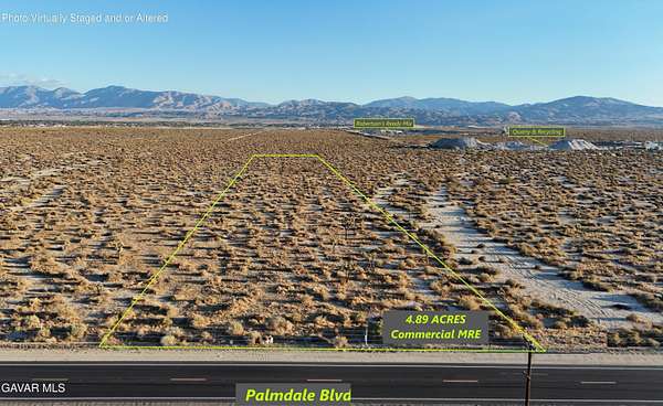 APN: 3024-002-024Coordinates: 34.579472, -117.9900835.05 Acres for sale in LA County. This property is located right on Palmdale Blvd near 75th St E. Excellent location in between Littlerock and Palmdale. Lots of through traffic in this area due to Palmdale blvd. being a vital throughway into Palmdale.