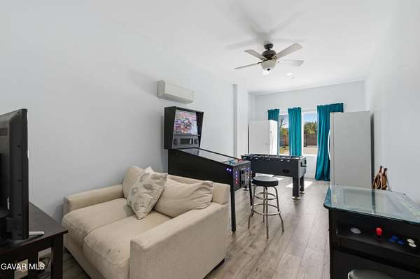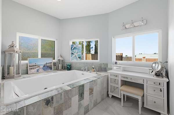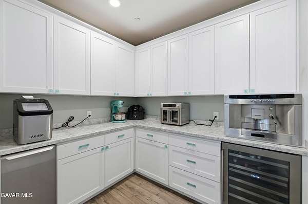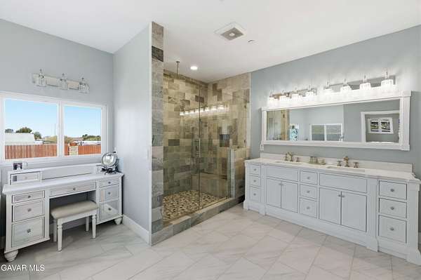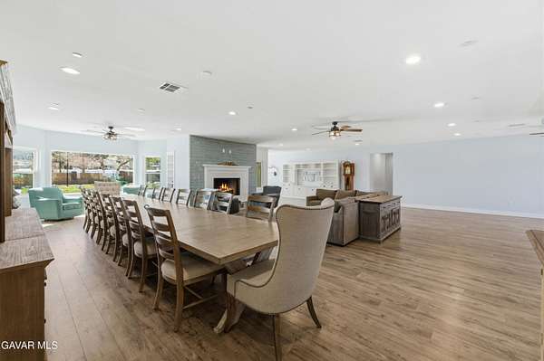 Fully remodeled in 2022, this exceptional nearly 5,000 sq. ft. luxury estate offers 4 bedrooms and 6 bathrooms, with each bedroom featuring its own private en-suite bathroom and custom walk-in closet. Two bathrooms include remote-controlled Toto smart toilets with built-in bidets. The spacious primary suite is a true retreat with a massive custom closet with center island and a spa-style bathroom with jacuzzi jetted tub.The chef's kitchen is designed for entertaining with custom soft-close cabinetry, oversized built-in Sub-Zero side-by-side refrigerator/freezer, Thermador 8-burner cooktop, warming oven, dual ovens, prep sink, and a large island with decorative color-changing lighting. The butler's pantry includes a wine refrigerator, built-in ice machine, and Thermador deluxe coffee maker.The grand great room features a fireplace and custom dining table with seating for 20 guests. Upgrades include luxury vinyl plank flooring, dual-pane energy-efficient windows, tankless water heater with instant hot water, whole-house fan, water purification system, dual HVAC systems, mini splits, ceiling fans, and 57 solar panels for energy efficiency.Enjoy a game room, private movie theater, sparkling pool, and an oversized workshop with bathrooms and laundry--ideal for an ADU, home business, or rental potential. Fully fenced with block walls and space for horses, animals, RV hookups, and toys. Barn, cargo container, and playground equipment included.Schedule your private tour today to experience this incredible property.