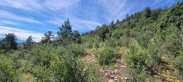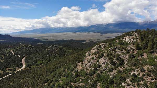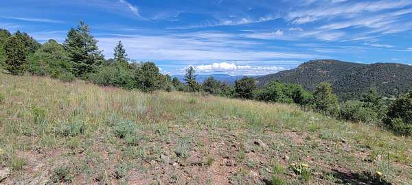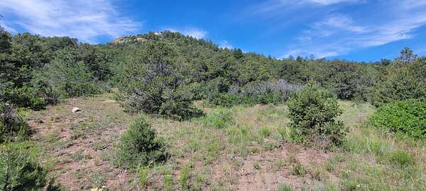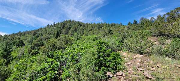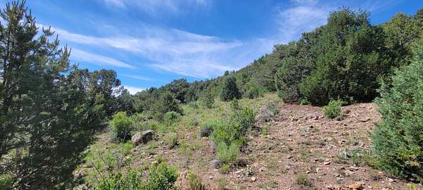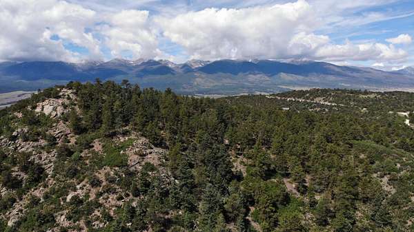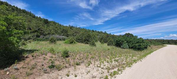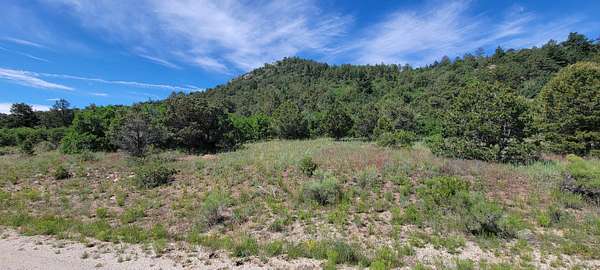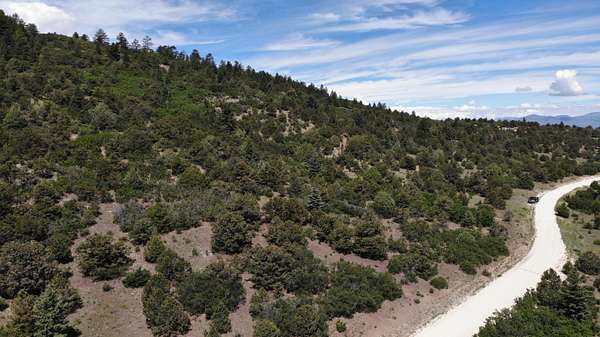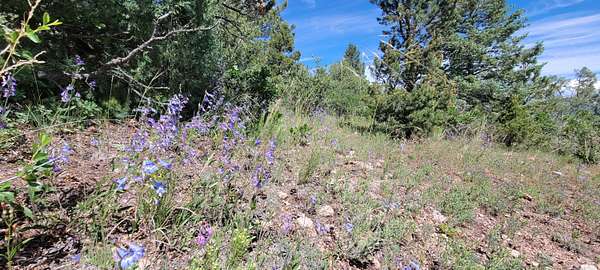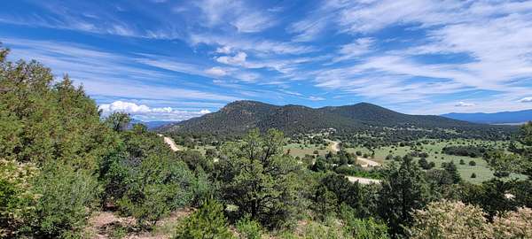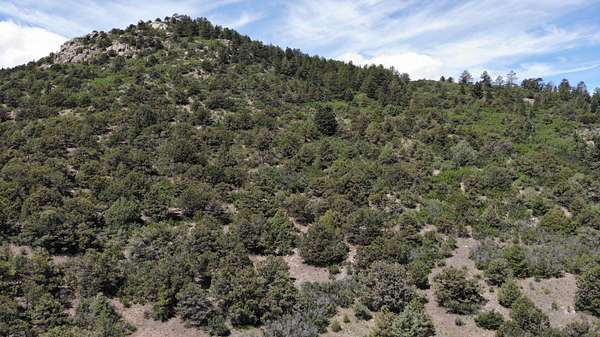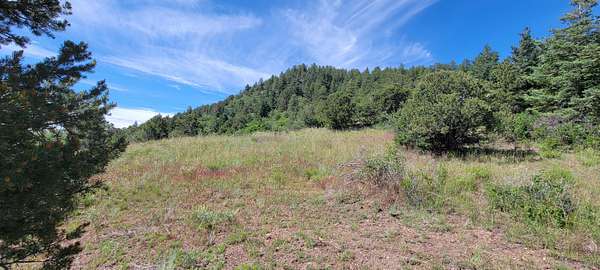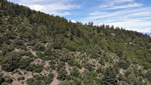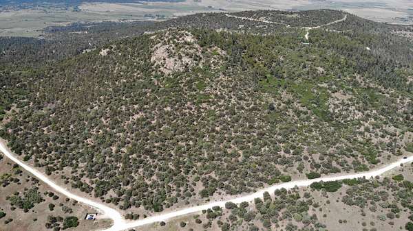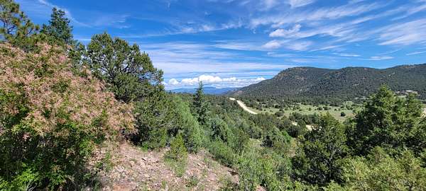 The property features well-maintained road frontage on two sides, allowing for easy access across much of the land and providing flexibility when selecting a building location. Multiple elevated building sites are present, each offering unique vantage points and orientation. From the eastern-facing slopes, enjoy sunrise views overlooking the valley below, while the southern and western aspects provide a backdrop of the Sangre De Cristo Mountains. The terrain is gently varied, offering a mix of usable ground and elevated positions that enhance both views and privacy. Vegetation is abundant, with pinon pine, juniper, and scattered ponderosa creating a well-covered landscape. Native grasses and wildflowers add seasonal color and natural appeal. A prominent rock outcropping and elevated point along the western boundary provide additional character and visual interest to the property.