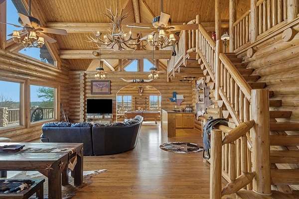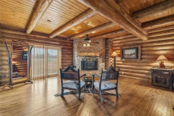 Located just 30 minutes south of Dallas, ABT Ranch offers a rare opportunity to own 107+- acres of premier ranch land in North East Texas, combining luxury, privacy, and convenience. Great for buyers seeking a second home near Dallas, private luxury retreat, or expansive acreage with quick access to the Metroplex for business & travel. Behind a private entrance, the property opens to rolling pastureland with 3 ponds, scattered & perimeter mature trees, lean to, and scenic views that create a true escape without sacrificing accessibility. Setting provides exceptional seclusion & exclusivity while remaining close enough for commuting. 3 story log home with stone accents features 6 beds & 5 baths, designed for entertaining, extended stays, and relaxed country living. Vaulted ceilings, exposed timber beams, and expansive windows fill the home with natural light and showcase panoramic views of the surrounding acreage. 1st floor includes an oversized primary suite, guest bedroom, full bath w double sinks, and a utility room with double washer & dryer. Living, dining, and game areas flow seamlessly for hosting or quiet evenings overlooking the land. 2nd level offers bunk room and secondary primary suite, both with ensuite bathrooms. Basement includes additional living space, 2 bedrooms & bathroom. Multiple outdoor living areas & expansive porches provide year round enjoyment of sunsets. Highly usable with open pastures, water features & room for customization. Located along the Texas Bluebonnet Trail, this ranch is ideal for a weekend retreat, executive residence, recreational ranch, hunting, fishing, cattle, equine, exotics or hay production. Property benefits from tax savings with agricultural exemption & strong long term value. Wildlife, livestock potential & wide open terrain enhance the appeal for buyers seeking luxury acreage near Dallas. Outdoor amenities include firepit, pond views & space for unforgettable gatherings under the stars. Video tour available.