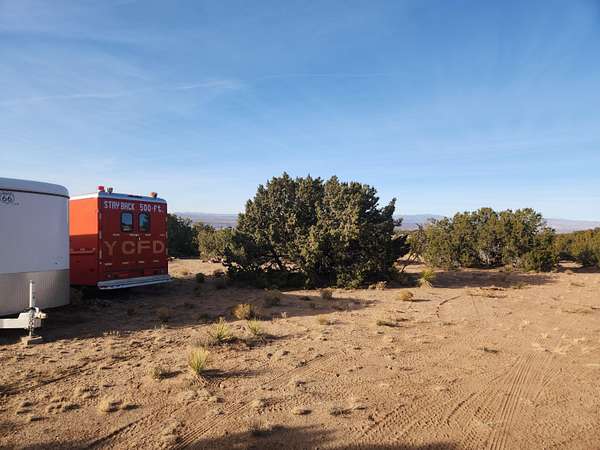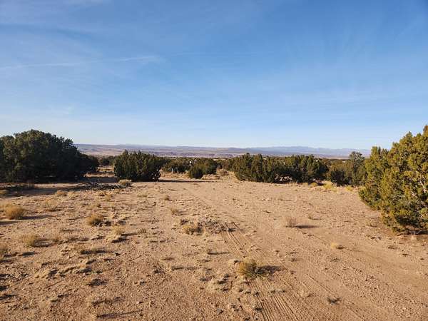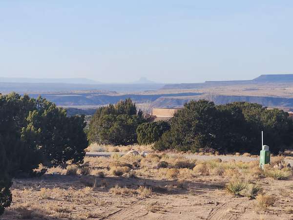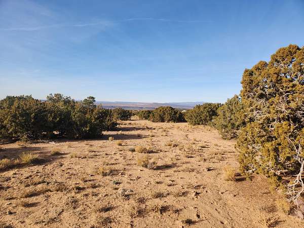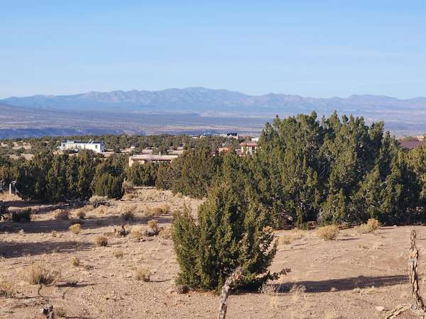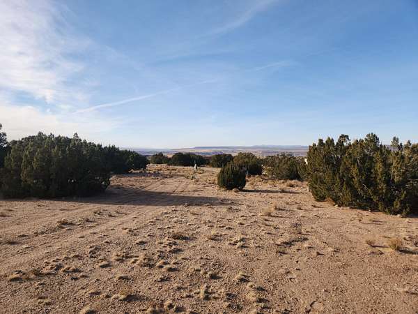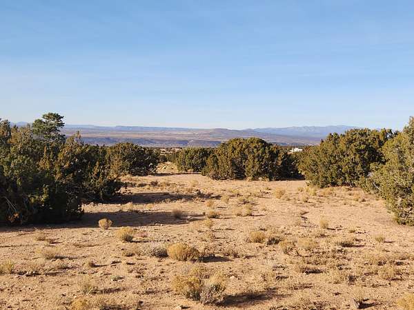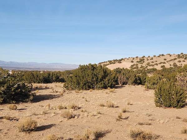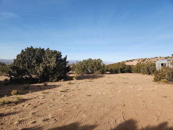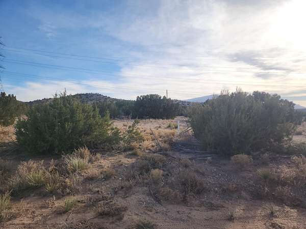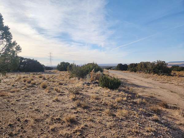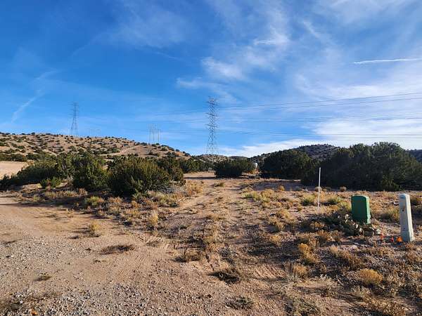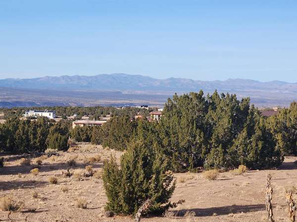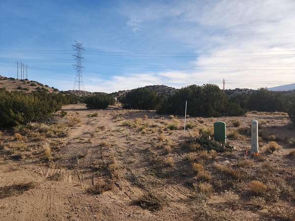 1.6 ACRES - WATER & ELECTRIC - JUST $60,000. Spacious building site - nearly all level or gentle slope - with views of the Mesas, Cabezon, Jemez Mtns & Mt Taylor! Sandia views too! Plenty of room for horses, etc. Bank financing available with 25-35% down! Very reasonable covenants: 1200 sq ft minimum house size, 17' height restriction, horses allowed. No HOA. You may see wild horses roaming this part of Placitas. Electricity is by the NW corner of the lot. Water is via the shared well on the property to the west. This lot is less than 1/4 mile from thousands of acres of public land! Plenty of trees afford extra privacy. The land is just 800' off paved public road. There are a camper, storage trailer and old fire service truck on the property; the seller will remove them at closing.