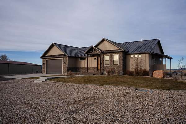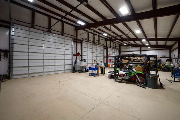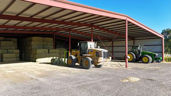 Improvements include a 3,400-square-foot custom home constructed in 2018. The residence features five bedrooms and three and one-half bathrooms, with a functional layout suitable for full-time living or extended stays. The home has been maintained and updated since its construction in 2018. Additional improvements include corrals for livestock, a three-sided hay barn totaling approximately 10,000 square feet, a 2,700-square-foot heated shop, and approximately 3,600 square feet of covered parking. These structures support equipment storage, hay handling, and general agricultural operations.