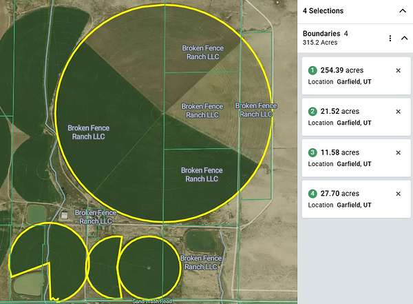 Located in Garfield County, Utah, this 467-acre high-elevation agricultural property offers a combination of irrigated production ground, infrastructure, water resources, and residential improvements. The property includes 205 acres of irrigated hay ground under modern pivot systems, room to expand to over 300 acres of production, with the remaining acreage consisting of additional agricultural land, infrastructure sites, and support ground.