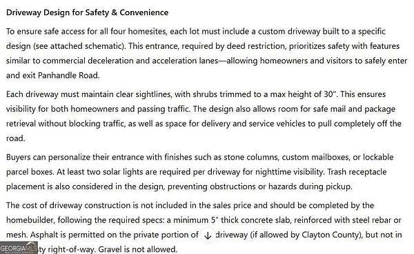 Tract TWO: 1.596 acres - Forest and Lake Views! Builder or Large Family Alert! Rare opportunity to buy up to 4 large adjoining home-sites! A builder may want all 4; a large family may want multiple lots. Or you may only want one. This small subdivision approval process (through Clayton County) is about 90% complete. Final approval expected by mid-July. The most difficult hurdle-septic and soil report approvals-has been cleared and documents are in hand. A few final approvals are still pending. The existing zoning will remain as it is currently zoned as 4 very large RS-180 parcels. (The lot size for ALL FOUR lots are so much larger than the code requires). We only anticipate a few minor additional requirements from the County. Tract Two is the only lot with both forest and lake views from the rear of the house. It offers 1.596 acres with Panhandle Rd frontage. The rear overlooks the lake and 24 acres of peaceful, undeveloped forest owned by Northpointe Property Owners Association and administered by Sentry Management. This property is not part of any HOA-enjoy the benefits without fees or restrictions. The adjacent green space offers privacy and will most likely never be developed. This lot is over 350 feet wide, offering many options for home placement and plenty of room for a garden, orchard, greenhouses, storage buildings, or other agri-uses. Clayton County zoning for RS-180 permits Urban Gardens and Market Gardens (if done per code). Up to 12 chickens are also allowed per lot, with limitations. Check the zoning ordinance to explore all permitted agricultural and residential uses. With this much land, your imagination is the only limit. You could even create your own private park! Lots are flat with gentle slopes away from Panhandle Rd-ideal for building and easy mowing. Wide road frontage offers privacy and flexibility. Full soil report is attached with color-coded types for your contractor. Septic design is simple-Clayton County requires 25,000 sq ft for most 3-4 bedroom homes; these lots range from 27,000 to 30,000 sq ft, offering ample room for conventional systems. RS-180 zoning allows for an accessory dwelling unit on each lot (e.g., mother-in-law suite). See the attached documents for requirements and the updated land survey.