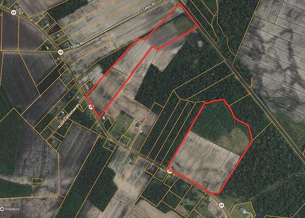 The land includes approximately 47 FSA acres of productive farmland that can be leased for income, a 4-acre duck impoundment, and 19 acres of woodland thoughtfully laid out with established hunting lanes. A .5-acre homesite with an old farmhouse (considered no value) is also included, along with an impressive 1,569 feet of road frontage for easy access.