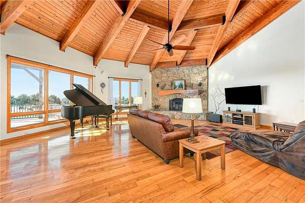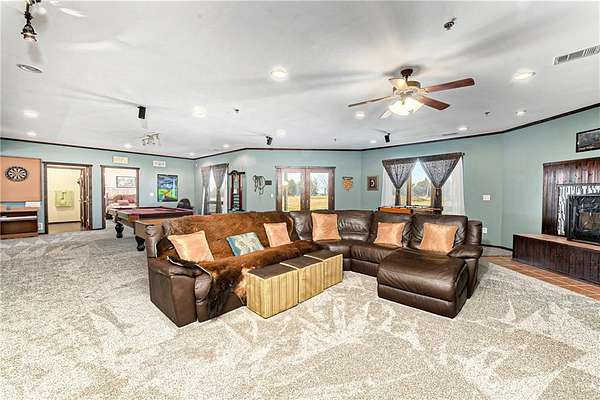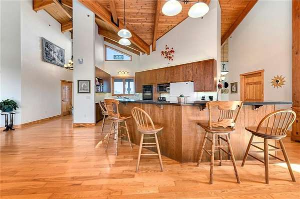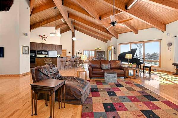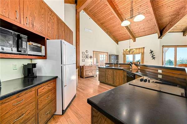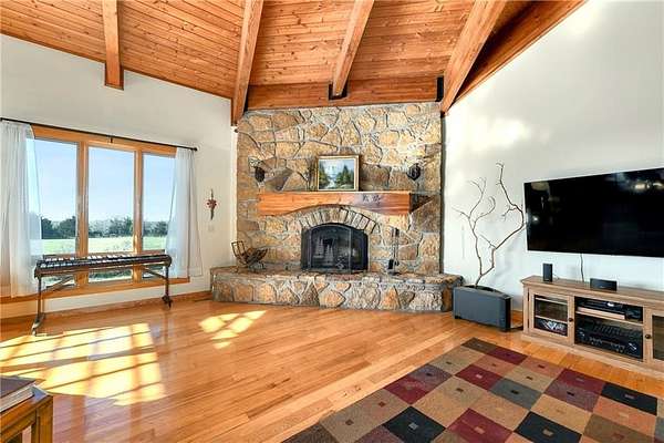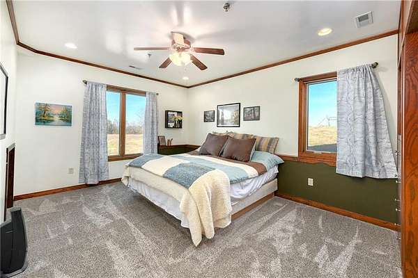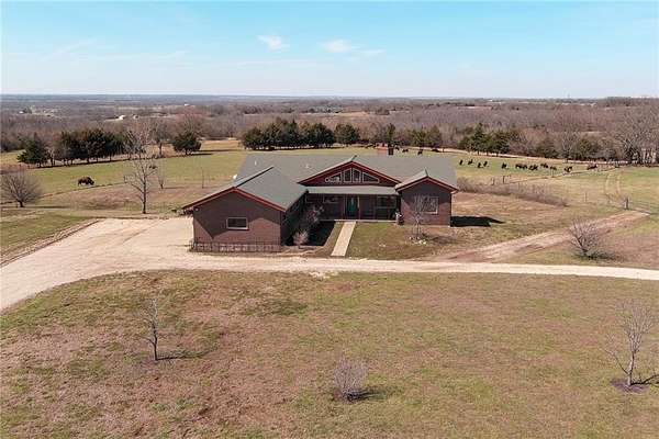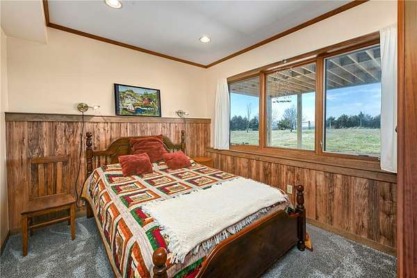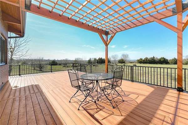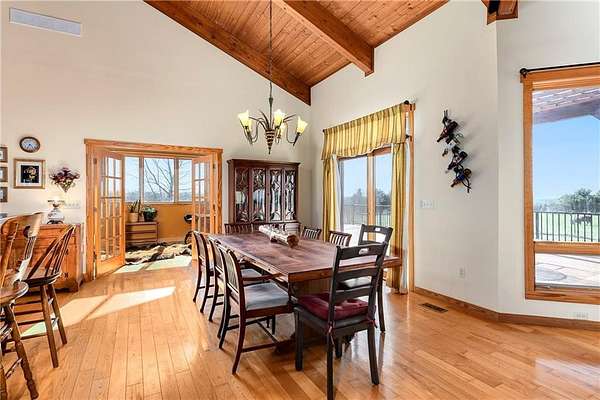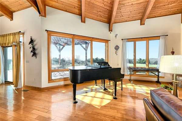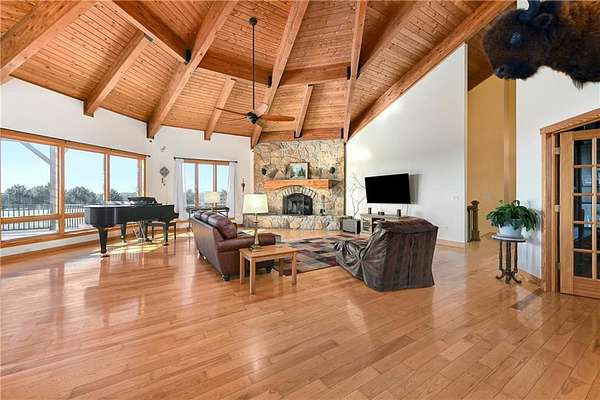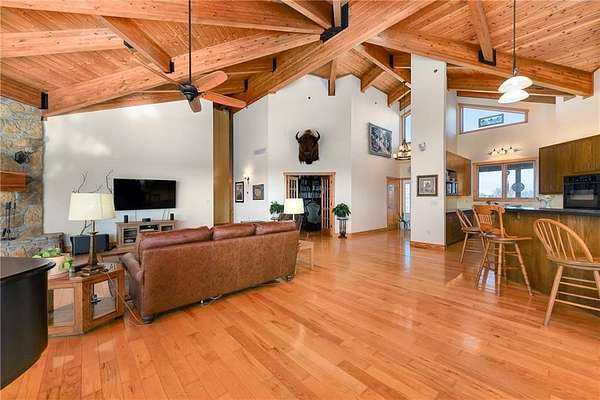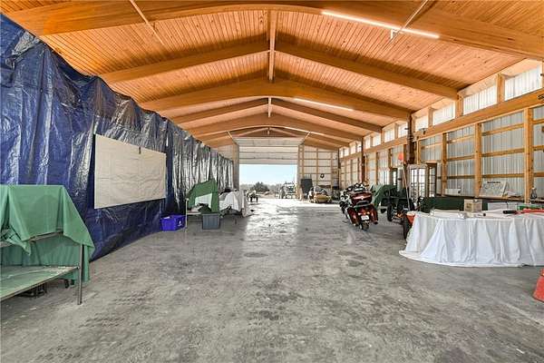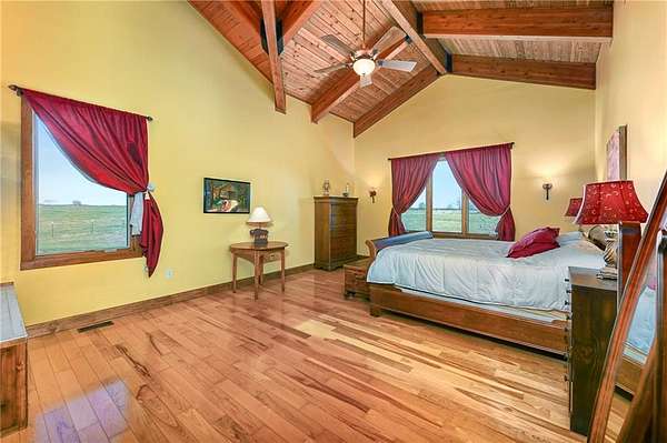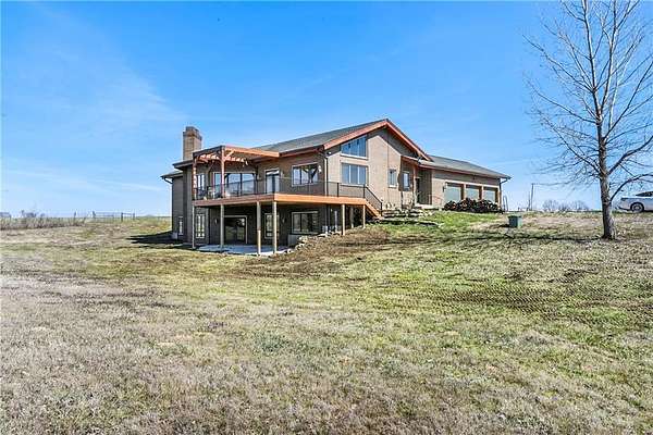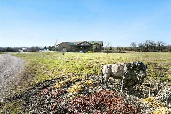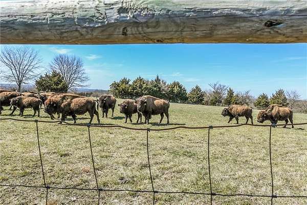 Incredible opportunity to escape the city and own a truly private paradise! Stonehaven Bison Ranch offers a rare blend of luxury, land, and limitless potential! Set on 131 breathtaking rolling acres, the property features a nearly 6000 SF custom brick home with soaring ceilings, incredible sweeping views, a huge outbuilding with concrete floors, and exceptional infrastructure for ranching, recreation, or future business ventures. Currently an operating ranch, the possibilities are endless: private estate, working farm, wedding or event venue, winery, or potential development opportunity. Complete with 3 ponds, 60 acres of hay ground, 60 acres of pasture, 10 wooded acres, chicken house and raised garden beds, there is something here to please everyone in the family. Deer, turkey and doves are plentiful and the hunting is excellent. This luxurious home is centered around a dramatic great room with walls of windows and a striking 2-story fireplace with custom mantle. The gourmet kitchen is a showstopper, offering a butlers' pantry, walk-in pantry, center island, baking area, abundant cabinets and a generous vaulted dining space. The luxurious primary suite features a fireplace, whirlpool tub, and dual-head shower. The main level also includes a majestic library with rolling ladder, laundry room, and a second bedroom off the kitchen. The walkout lower level is accessible from two staircases (one with chairlift) and includes 3 bedrooms, 2 baths, a spacious family room with fireplace, a gaming area and large bar. Indoor and outdoor entertaining options abound with composite deck with arbor which offers unmatched views. Highlights include geothermal heating & cooling, fire sprinklers, heated 3-car garage, cedar-lined drawers, custom cabinets and solid surface countertops throughout, and fresh carpet and paint! If you have been dreaming of a refined rural lifestyle, this one-of-a-kind estate in the heart of Miami County just might be "the one"!