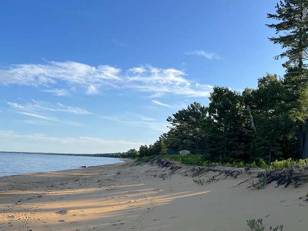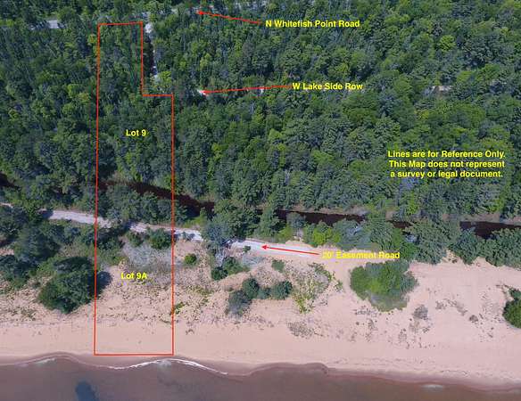 Located along Third Creek with 108 feet of walkable sandy beach on Lake Superior's Whitefish Bay. This property offers two lots one on the beach and one on the other side of the creek (a back lot) that extends all the way to N Whitefish Point Road. Build your dream home with the well and septic on the back lot. The Beach lot offers room to build a Gazebo, Screen House, or Shed with electric that can be available to be put in. Eagles roost nearby and the tranquility is truly inspiring. Access is by privately maintained roads within the subdivision. Deed restrictions in place. Fiber optic, electric and phone/DSL all available. No wells or septics are permitted on the beach lots due to setbacks. This unique property has a recent survey on file. Split Closing Cost.