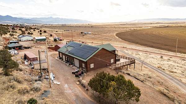 $20,000 SELLER CREDIT. 1 ACFT water share, 500 gallon water tank and water softener. Recently purchased 54 panels, full Tesla walled solar system, 89K. Lovely home on the outskirts of Paragonah with gorgeous views in all directions! This full log home features 3 bedrooms and 2 bathrooms. Large open floor plan with large windows. Master bedroom has full views of valley, large walk-in closet and pellet stove. There are vaulted ceilings throughout the house. Spacious kitchen with outside entrance and an island. Outside features a large back deck, a 30' X 45' metal building w/ concrete floor, perfect for a workshop and an attached garage. Perfect location for those who snowboard, ride ATV's, hike and enjoy outdoor activities. Brian Head, Panguitch, Bryce Canyon, Zion and Cedar Breaks are basically in this home's backyard.