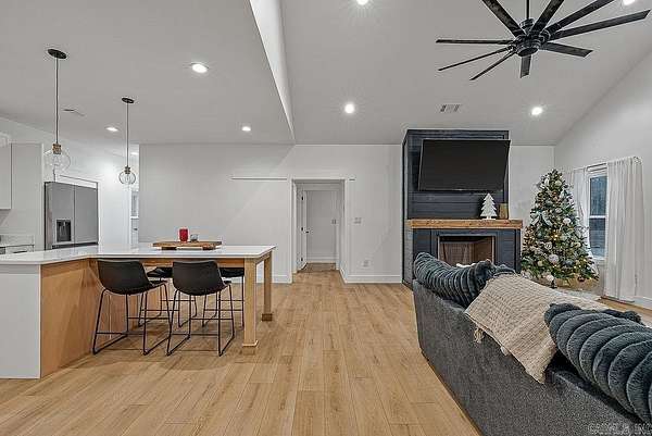 Est $1,609/moNew construction home sitting on 3.50 acres. This property features an open floor plan living and kitchen area with quartz counter tops, Luxury plank vinyl flooring, gas log fireplace and a cozy vibe! 4 bedrooms and 2 baths with a play room/bonus space! Primary suite has custom tile shower, soaker tub and tile flooring. This home is conveniently located and situated between Paragould and Jonesboro! Spray foam encapsulated insulation to help offset costly heating and cooling bills. Definitely a must see for those buyers looking for a new home on acreage!!!