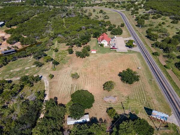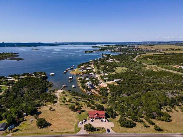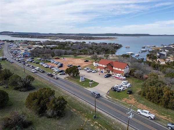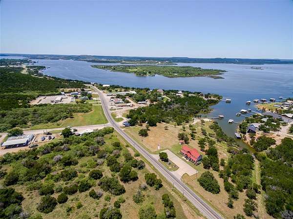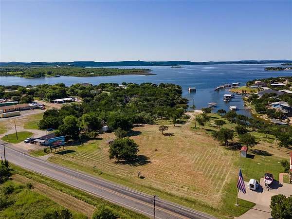 RARE COMMERCIAL OPPORTUNITY to own deeded LAND on the main commercial road into the center of Possum Kingdom Lake. This location enjoys the MOST road traffic, and this is the most densely populated area of the lake. One way into the Peninsula and one way out right in front of this excellent location. Sheriff station on west boundary and Possum Kingdom Welcome Center on east boundary. A commercial water meter has been installed. Building site and parking area on excellent level soil. Septic is approved and there is the potential of a sewer tap but not guaranteed. State Highway frontage is 293 feet. This parcel is a minimum of 100 feet deep PLUS an additional half acre is included which could also be subdivided by new owner and offered as a lake access building site if water meter is available or remain unsubdivided, just depends on new owner's need for space. FYI Lot 2 half acre on same plat is offered separately with new water meter. Lakefront parcels and other platted or unplatted parcels in this development are not included in this offer. Sale is subject to Seller's approved proposed use and deed restrictions. To north is big view of the lake with walking access to BRA land and pristine limestone lakefront cove. Listing Agent is a Limited Partner