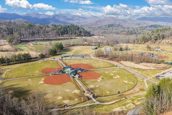 Big Winter (280 degree) View of magnificent Smoky Mountains. Terrific Building Lot, superb location, plenty of Privacy, featuring both upper and lower paved road access. Long Range Mountain Views. Wonderful mountain sunsets! Power and community water are available and WATER USAGE IS COVERED in POA dues! (Excellent quality well water.) 7 min. to shopping and very close to Parker Meadows Community Park, where you'll find ball fields, playground, pickleball court and walking trail along beautiful Cartoogechaye Creek for family, fishing, floating and fun! Wonderful seasonal views while cool in summer. Envision your new home by seeing our "virtual build" attached to this listing. Fiber Optics available in area as well as Starlink and Satellite. Nice area of hardwood trees. OWNER FINANCING AVAILABLE.